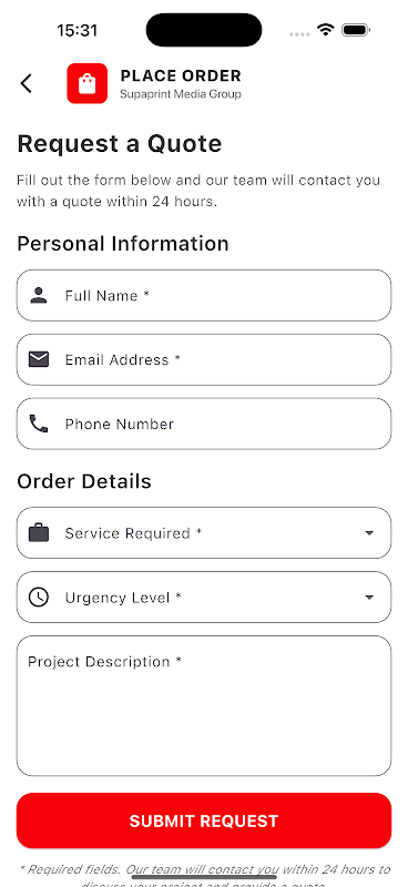 無論您需要醒目的標誌、專業的展示、訂製服裝還是獨特的企業禮品,我們的應用程式都能讓您輕鬆瀏覽我們全方位的服務、請求設計並提交諮詢——所有這些都在一個地方。