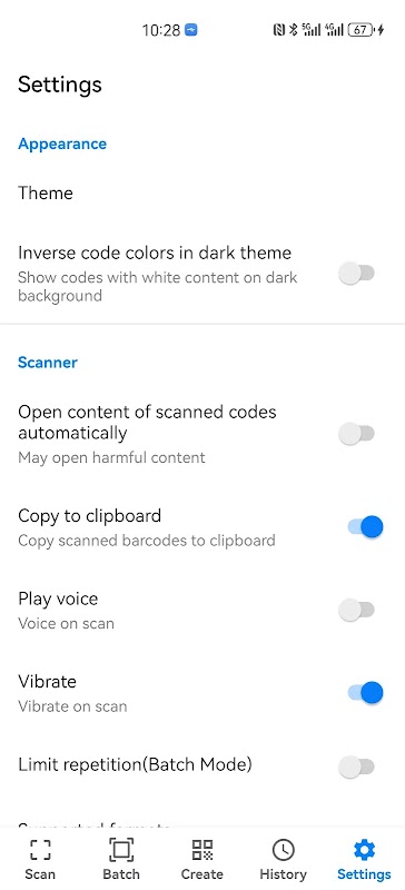 查看歷史中掃描和創建的代碼。