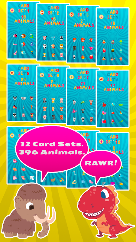 ★ 12 card sets with a total of 396 cute cartoon animals.