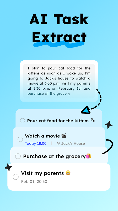 ⚡ 快速規劃:使用文字或語音輸入輕鬆建立任務-AI 會智慧檢測任務、日期和地點。