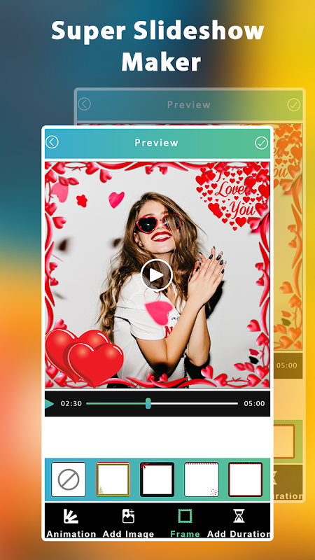Super Slideshow Maker is the best app create amazing videos with special effects with your choice of music. Make videos that you’ll be proud to share with your friends. Create Amazing Video with Super Slideshow Maker app which have over lost of frames.with this application you can create your photos instantly into videos. you can organize and decorate your special moments in your life and share them with your loved ones. Send it as a Valentine's Day card or save it as