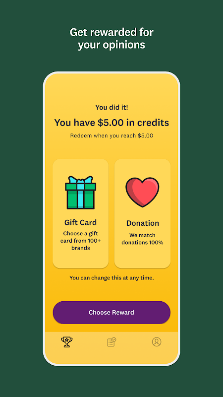 當有新的調查可用時,您會收到即時提醒,或者您可以隨時打開應用程式自行查看調查。每完成一份調查都能獲得獎勵——達到 5 美元後,您就可以提現!