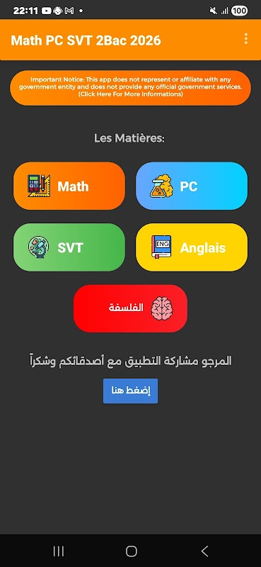 該應用程式提供教育內容,包括摩洛哥教育部發布的過去考試,這些內容可以在以下網站上免費線上取得:(www.moutamadris.ma) 和 (www.alloschool.com)。