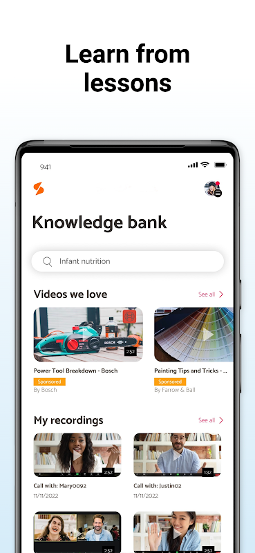 跟著專家直接給你一個很好的答案。只需在他們的答案線程或個人資料中點擊「追蹤」即可存取他們的直接訊息、追蹤者社群和影片內容。如果您仍需要更多協助,您可以與他們預訂 30 分鐘或 1 小時的視訊通話,應用程式會在您需要上網時提醒您。