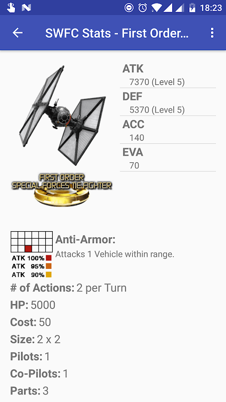 The official SWFC Stats app is here! Use this app to find all cards, skills, evolution, vehicle, stack and pilot stats for Konami's Star Wars: Force Collection in a single app - with native support for all four languages of the game!