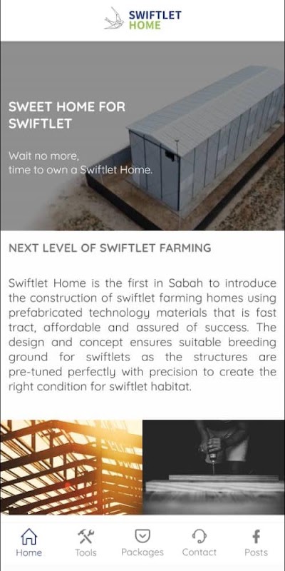 Swiftlet Home是一個應用程序,可以幫助用戶檢查一個區域是否適合建立一個金絲燕家。我們也是沙巴州第一家採用預製技術材料建造金絲燕養殖場的公司,這些材料快速,經濟實惠且成功。設計和概念確保適合金絲燕的繁殖地,因為結構經過精確預調整,為金絲燕棲息地創造了合適的條件。