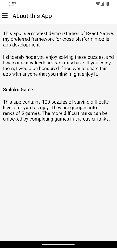 我真誠地希望您喜歡解決這些難題,並歡迎您提供任何回饋。如果您喜歡它們,如果您願意與任何您認為可能喜歡它的人分享這個應用程序,我將非常榮幸。