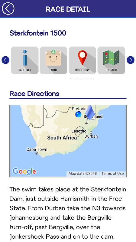 information about the race. It keeps you informed of changes in important information and is the only inclusive open water calendar in South Africa.