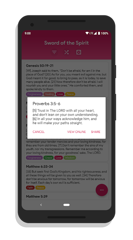 ✞ Easily share a saved verse with family and friends who may need it, as I have with many already