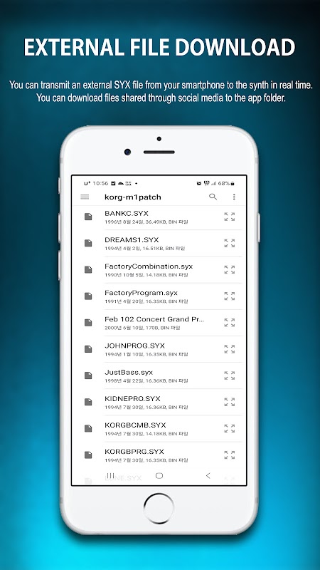 將樂器聲音來源儲存在智慧型手機上,就像合成器的記憶體包、卡片或軟碟的儲存裝置一樣。
