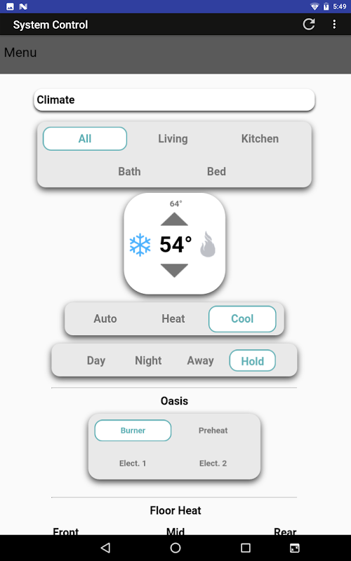 System Control 是一個基於 Web 瀏覽器的應用程序,支援與 SilverLeaf Electronics, Inc. 的 LR 設備進行 Wifi 通訊。透過這種方式,使用者可以透過網路瀏覽器監控和控制支援 RVC 的車輛中 RVC 總線上的所有裝置。系統控制的優點在於提供與 LR Web 介面的快速、輕鬆的連接。