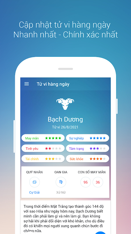 - Để tải thông tin Tử Vi Hàng Ngày hoặc Hàng Tuần bạn sẽ cần 10 KB dữ liệu. Đảm bảo Wi-Fi hoặc 3G được bật và sau đó thử lại. Bạn có thể xem Offline sau khi dữ liệu được tải về thành công.
