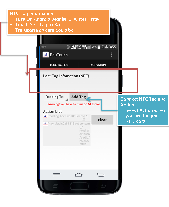 只是一些卡(或標籤)註冊我們的應用程序。與藍牙行動來看兩者播放音樂的行動。