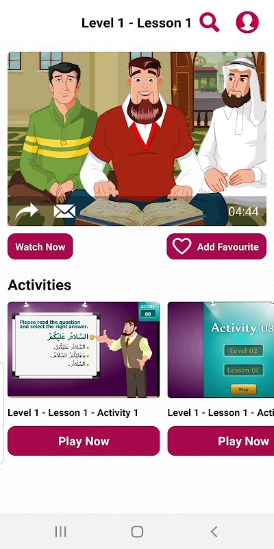 This application is characterized by a non-traditional style, designed by experts to be a qualitative change in teaching Arabic language, and it enables the user to learn different skills such as listening, speaking, reading and writing in Arabic.