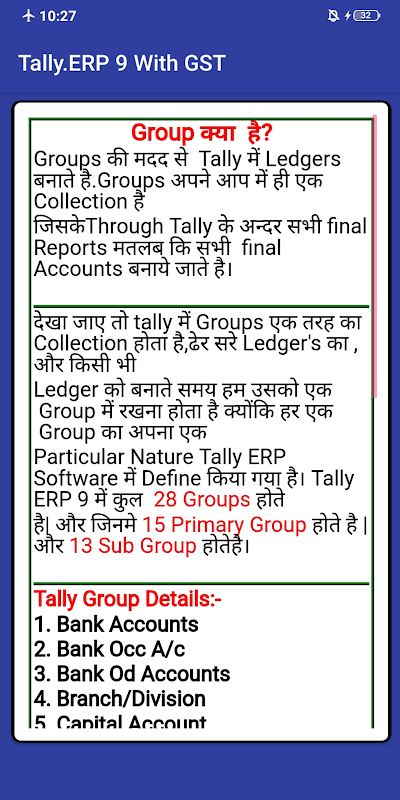 該應用程序在印度語中包含Tally.erp 9 GST電子書材料。