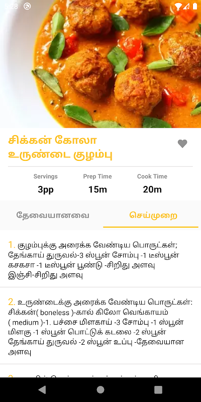 Tamil Samayal (தமிழ் சமையல்) recipe app is especially designed for Tamil recipes keeping in mind Indian ingredients and cooking techniques. The specially designed search functionality will show you the most popular recipes on top, aiding in better discovery.