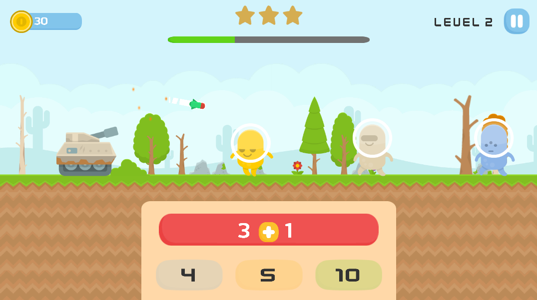 ** It is a game that uses mathematical operations, addition, subtraction, multiplication, and division and then responds to the results. It's a speedy practice that is not boring. Because we simulate the battle between the tanks and the aliens to cooperate to defeat the aliens. With the ability you have.