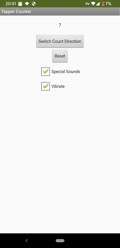 允許一個人通過(可切換的)令人滿意的聲音和振動向上或向下計數。數字計數器。