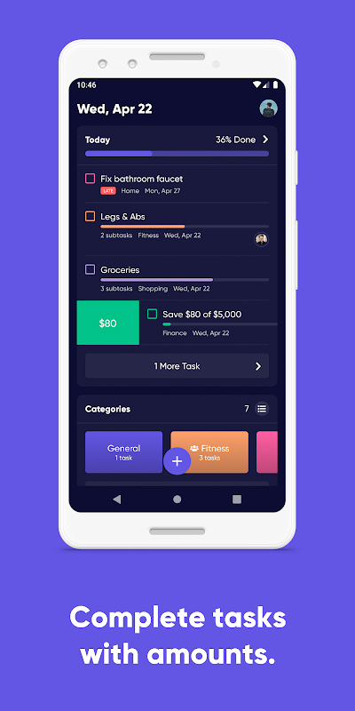 Taskful是一個聰明的待辦事項列表和任務管理器應用程序,可幫助您保持進度並按時完成任務。它分解了您的所有任務,僅向您顯示了您今天需要做的事情,因此您可以保持專注和動力。無論您是想跟踪自己的腳步,喝更多的水,還是想念一陣子都沒讀的書,Taskful都可以幫助您完成工作。