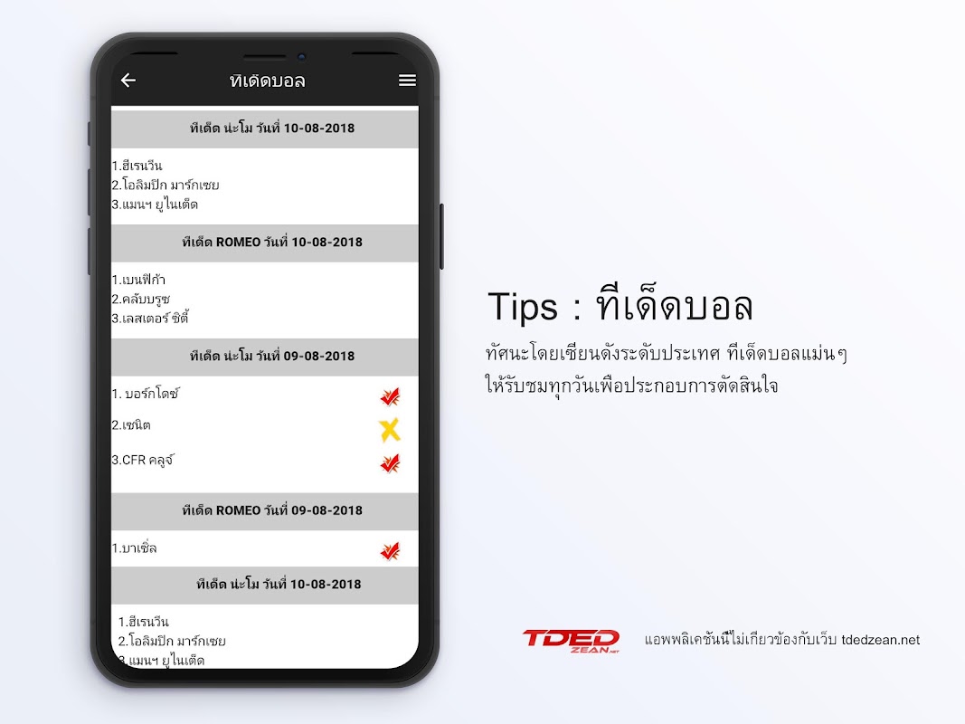 tdedzean แอพพลิเคชั่นที่มาพร้อมความสามารถที่มากขึ้นสามารถตรวจสอบ ผลบอล ในรูปแบบ livescore คือการรายงานผลแบบ realtime ตลอด 24 ชั่วโมง