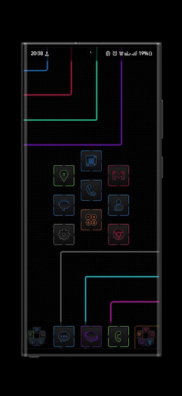這是一個彩色圖示包,帶有深灰色方形底座和現代科技內線漸變。