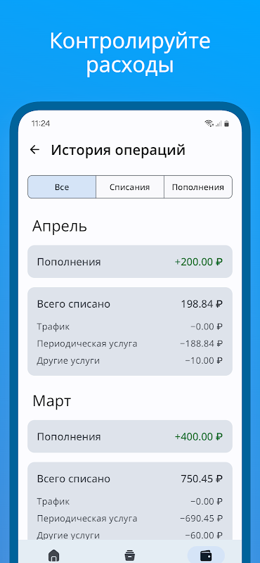 - 控制你的財務。您可以使用SBP、銀行卡或其他方式預付餘額,並進行承諾付款。