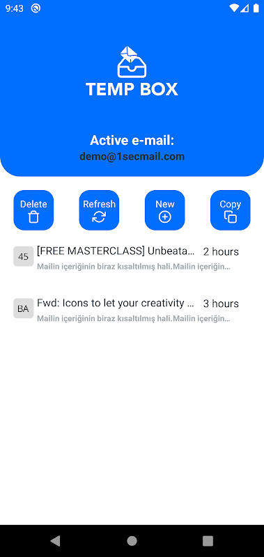 APKPure 使用簽章驗證功能,確保為您提供無病毒的 Temp Mail by Tempbox APK 下載。