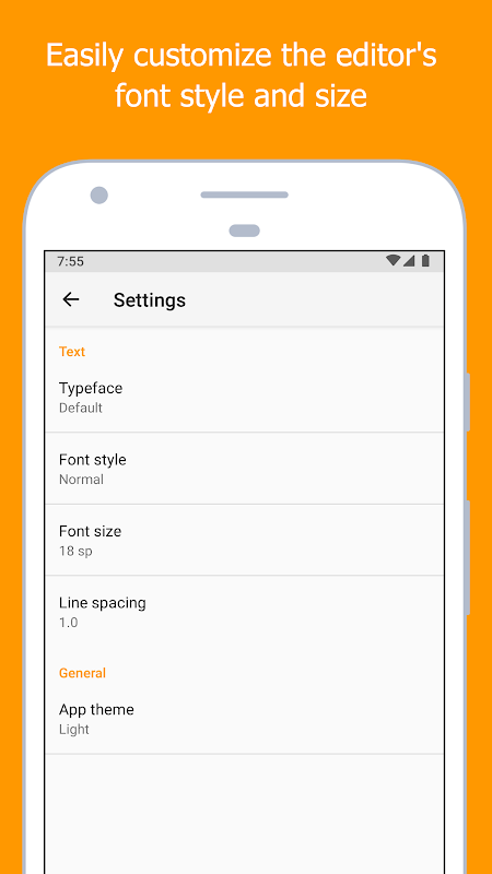 Temporedit允許您自定義編輯器的字體,字體樣式,大小,行間距以及背景和文本顏色。