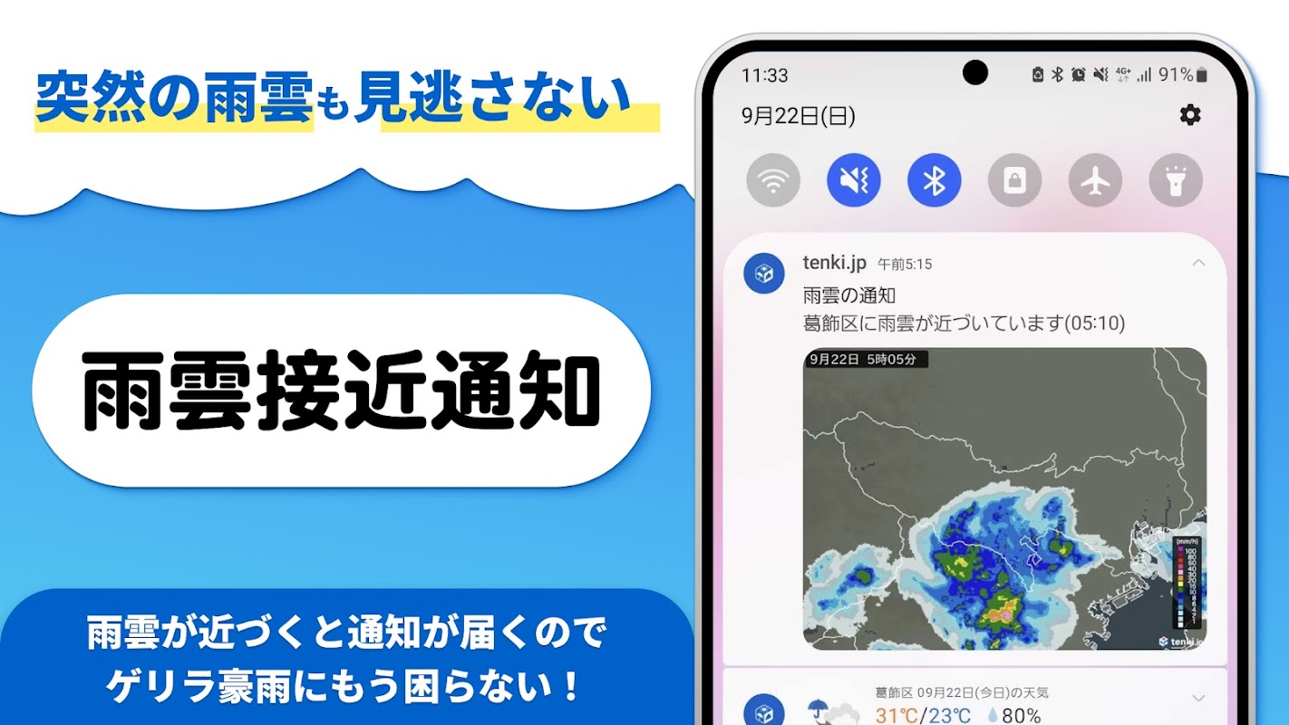- 當雨雲接近您目前位置時,您將收到推播通知