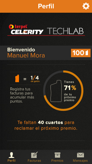 Permite enviar una foto de la factura para ser validada por Terpel y en casi de ser aprobada almacena puntos para luego ser cambiados por premios. También posee una sección de soporte y chat.