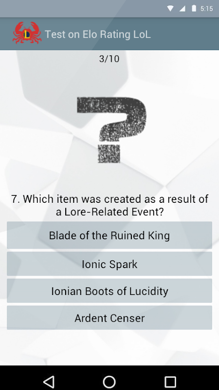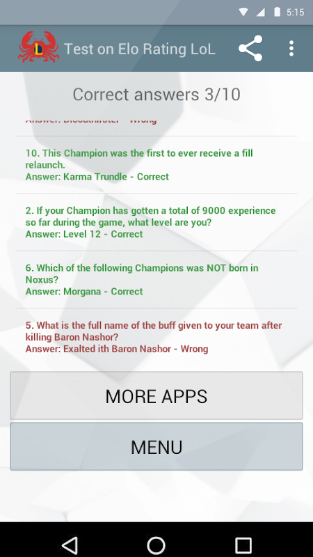 This application is a test to determine your game knowledge based on your skills. More correct answers - better elo rating you get.