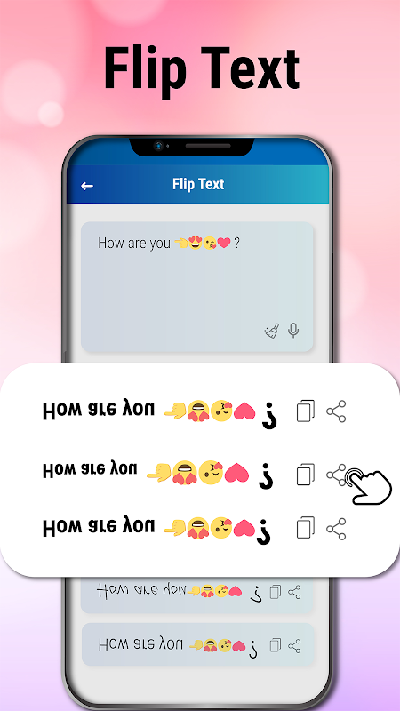 使用這款獨特的文本重複器應用程序將重複的文本翻轉過來,從而轉換它。 文本複制器要求用戶輸入要重複的文本,啟用翻轉文本選項,並以翻轉方向生成重複文本