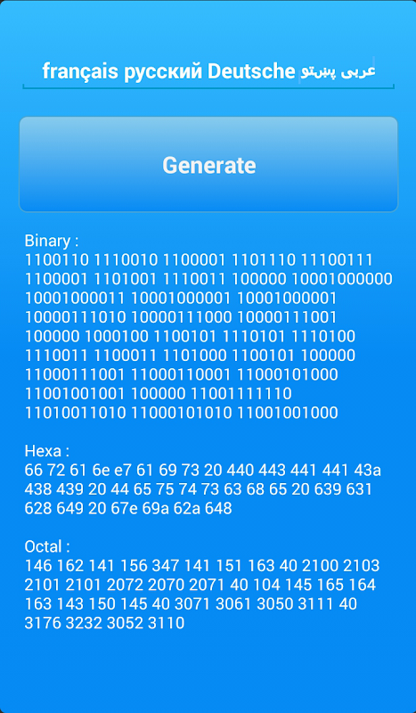 還幫助將阿拉伯語,普什圖語,法語,荷蘭語,俄語,中文,波斯語,日語等所有母語轉換為二進制,六進制和八進制。