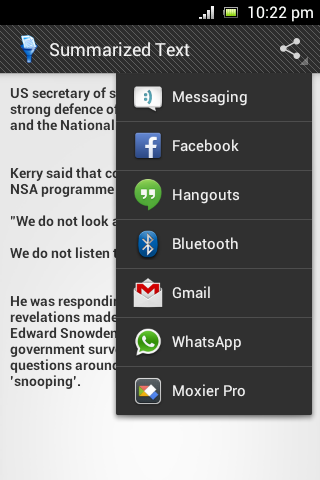 Provided the ability to get content of web page directly to "Text Summarizer" app (Ex: Go to Menu on browser -> Share Page -> Select Text Summarizer)