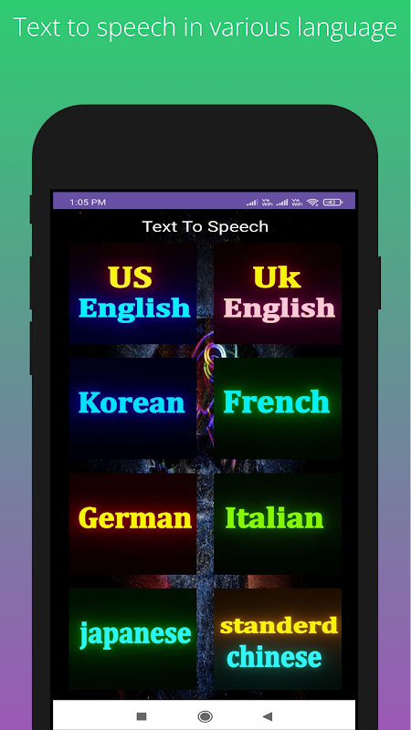 該應用程序為您提供將文本轉換為多種語言語音的功能