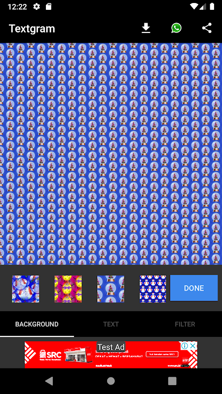 - Background Pattern : Textgram - Text on Photos also provides some background pattern repeat that an alternative to create your text art.