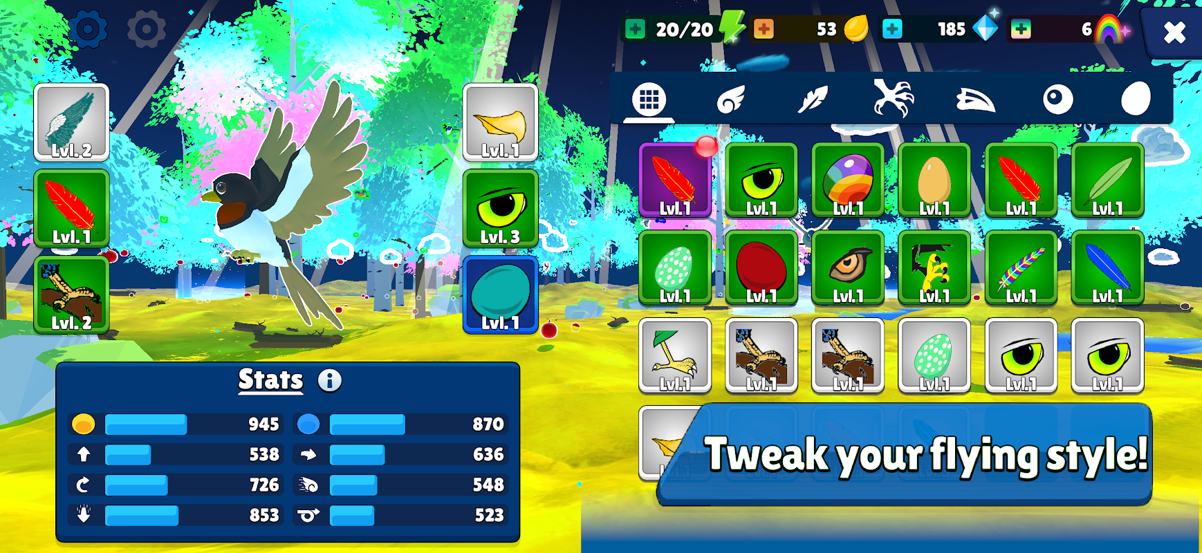 尋找、孵化和升級不同的鳥類,獲得新的外觀、能力和飛行品質!