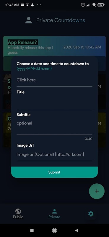 Countdowns made simple. First app with a public countdown space alongside a very intuitive way to make regular countdowns.