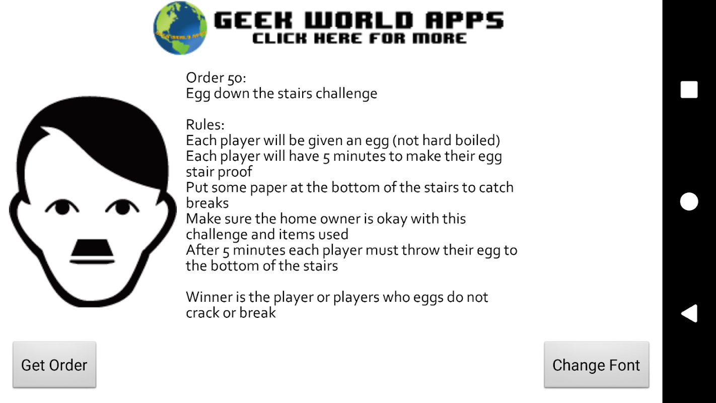 如果您正在尋找新的和不同的東西來參加派對,這是完美的!如果它下載超過100次,我們會考慮添加更多任務,以確保應用程序對玩家來說總是新鮮的!目前在應用程序中有50個訂單,我們建議您每場比賽玩4到8個!
