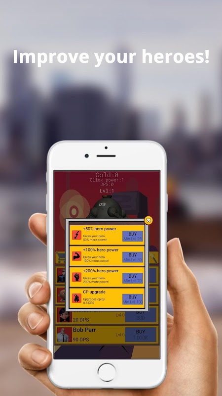 ✔You can improve your heroes! Just click on them and a new improvement menu will appear. Spend your gold and feel stronger!