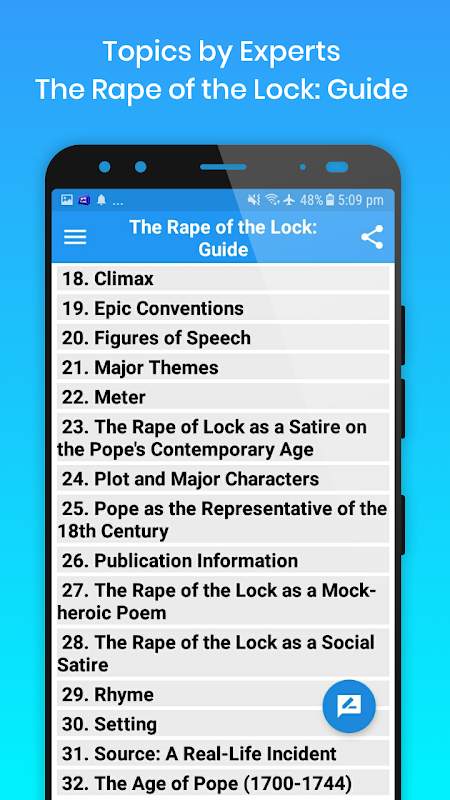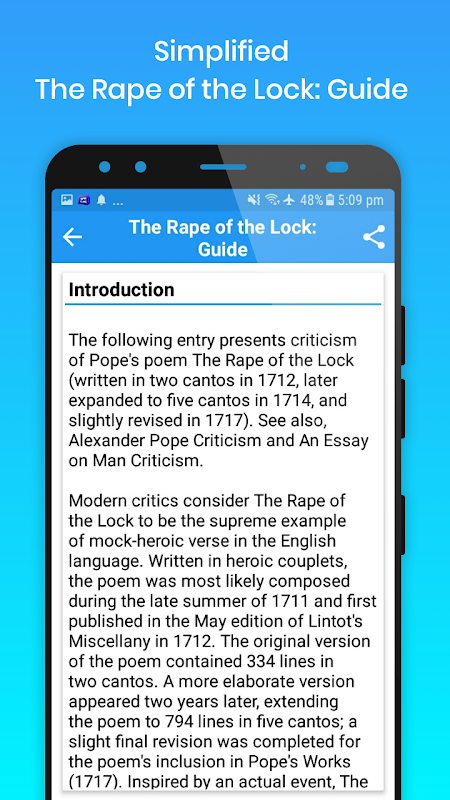 This Guide app works both online and offline, and contains 36 basic topics about one of the famous poems of Alexander Pope, The Rape of the Lock.