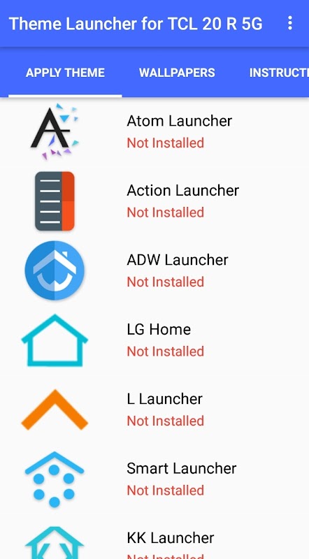 3. Start Launcher and then you can apply the Theme launcher for TCL 20 R 5G. If you already have Launcher on your phone, you can go to the launcher settings and select Theme launcher for TCL 20 R 5G.