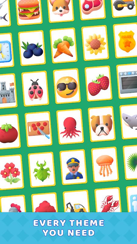 按主題搭配卡片,例如動物、食物、地點、物品等等。每張卡片都顯示一個可愛的圖標或一個清晰的詞語,你的目標是找到正確的主題匹配來清除山峰。