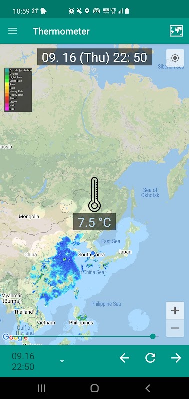 ◉ 您可以查看其他城市的溫度。長按地圖選擇您想查看天氣的城市。