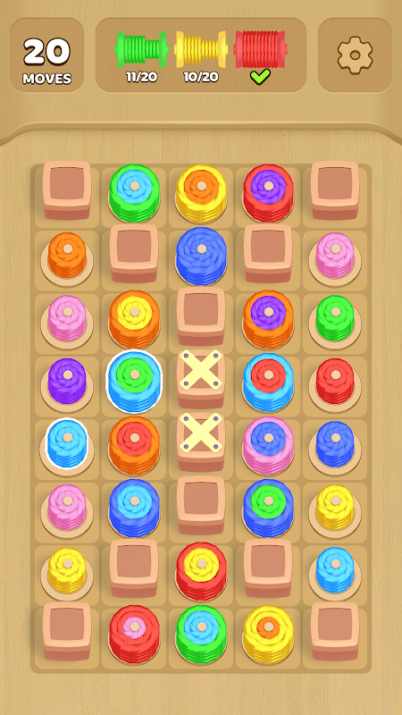 拖曳線軸合併,創建相同顏色的線圈,並收集它們以完成每個關卡。每個關卡都帶來全新的地圖佈局和鮮豔的色彩組合,挑戰您的合併和編織技巧!