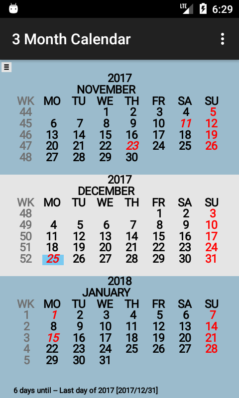 三個月日曆是一個“回歸基礎”的日曆,在一個屏幕上提供一年中三個月的視圖(類似於 3 個月視圖挂歷)。