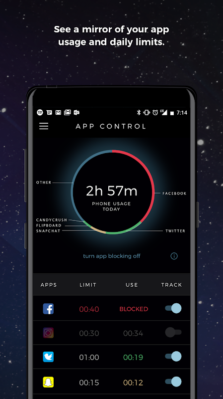 - App Blocking lets you set boundaries with the apps you choose. Once you reach your limit for a particular app, you won't be able to access it until 12AM the next day.