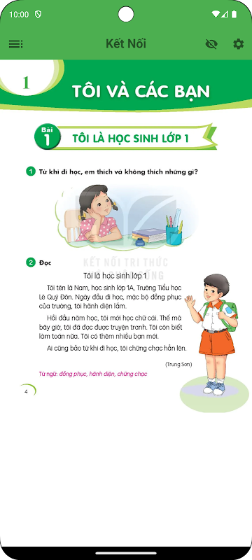 應用程式中的內容緊貼越南教育出版社的教材《越南語1 - 知識連結》。