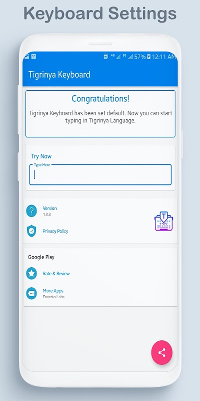 APKPure 使用簽章驗證功能,確保為您提供無病毒的 Tigrinya Keyboard APK 下載。