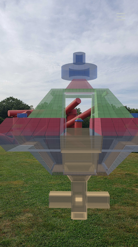 The free Time Fork App allows us to use our mobile screens as windows to peer into this space, revealing structures that seem to be under construction or in ruin; buildings that could have a ritual, municipal or even an industrial function. The features of World B appear as self-luminous, abstract sculptures, with texture and detail left to the imagination. We move like ghosts here, passing through walls and other barriers, archaeologists of a parallel world.